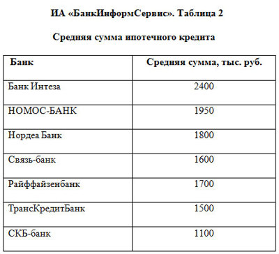 Средняя сумма ипотечного кредита, если ориентироваться на данные ЦБ, равняется 1 млн 200 тыс. руб. Но реальные цифры разнятся, иногда приближаясь к 2 млн руб. (см. табл. 2).