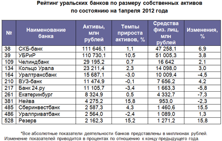 Большинство уральских региональных банков демонстрируют положительную динамику темпов роста собственных активов либо незначительный спад по этому показателю. Например, это такие банки как: Челиндбанк, Кольцо Урала, Сберинвестбанк, банк «Резерв», ВУЗ-банк, Уралтрансбанк, Банк 24.ру, банк «Екатеринбург», банк «НЕЙВА», Уралприватбанк.