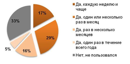 33% опрошенных признались, что ни разу не пользовались за последние 12 месяцев банковскими услугами в он-лайне. Доля подобных ответов выше среди женщин (36% против 29% у мужчин), старше 35 лет, с низким уровнем доходов.