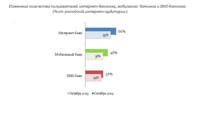 Интересно, что активно растет и количество пользователей мобильного банкинга. За год число юзеров банковских приложений для смартфонов и планшетов увеличилось на 58% и составило 17 млн человек.