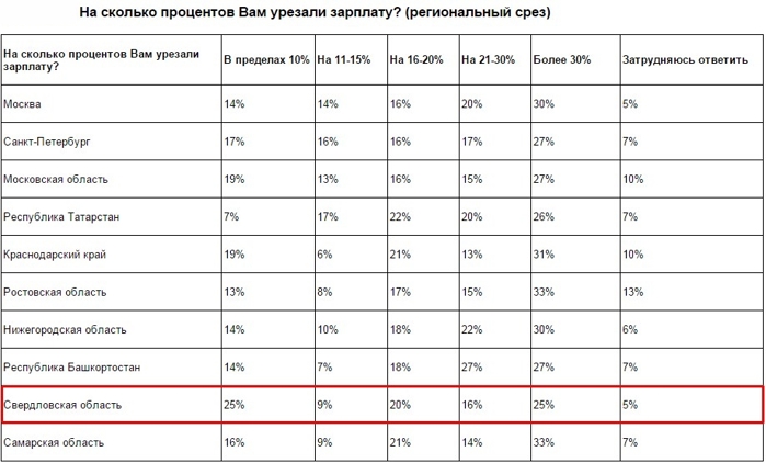 Компания HeadHunter провела опрос среди населения страны о том, с какими трудностями столкнулись люди в этом году. Оказалось, что каждому третьему сотруднику со Среднего Урала сократили зарплату от 10 до 30%. Премии урезали 28% свердловчанам, а лишился работы каждый четвертый. На введение «серых» зарплат и сокращение рабочей недели пожаловались 7%.