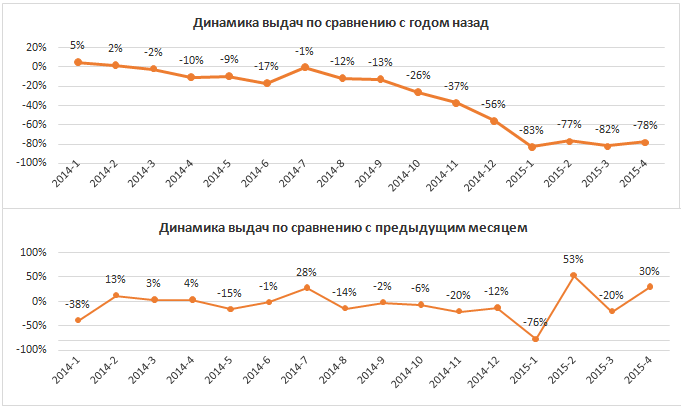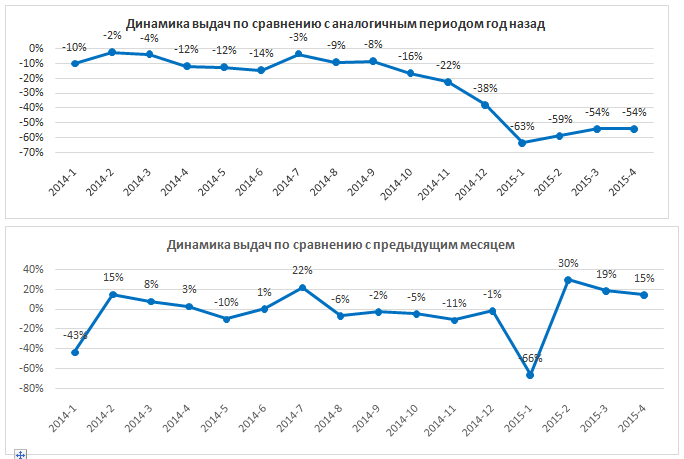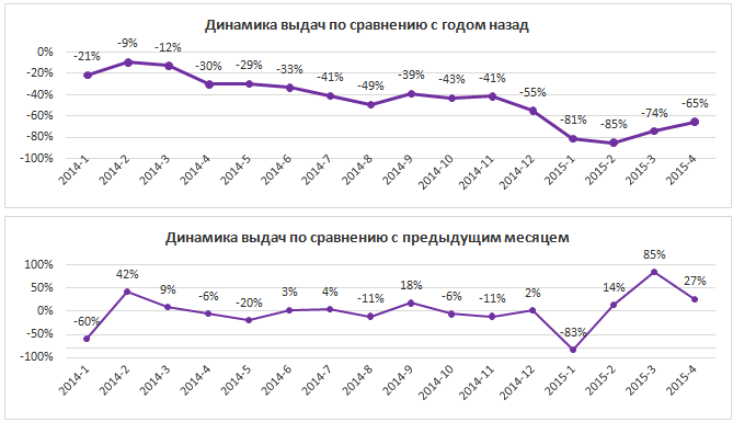 Неожиданно высокие показатели по рынку автокредитования подтверждают также и в аналитическом агентстве «Автостат». В целом по России в апреле 2015 года было продано 110 479 автомобилей, 35% из них было куплено в кредит. В первом квартале 2015 года этот показатель составил 20%, а по итогам 2014 года он был в районе 40%, напоминают в «Автостате».