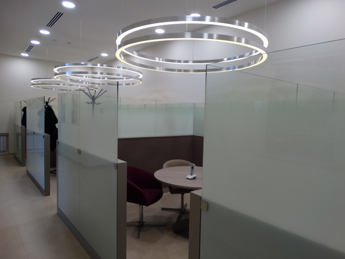Отдельная зона выделена для обслуживания представителей малого и среднего бизнеса. Для предпринимателей также есть три просторные переговорные комнаты, их можно использовать для деловых встреч с партнерами по бизнесу. Еще пять компактных переговорок предусмотрены непосредственно для заключения кредитных договоров и совершения сделок.