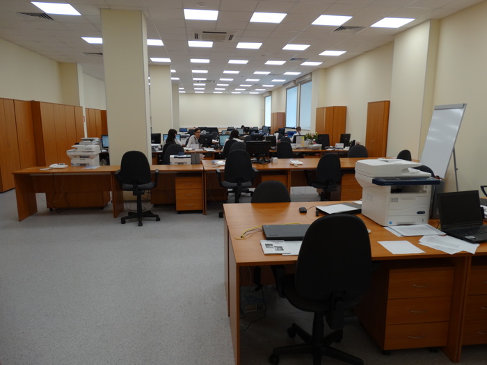 Всего во фронт-зоне офиса работает около 100 сотрудников, еще 60 человек - в бэк-офисе, расположившемся в этом же здании - это сотрудники, которые ведут кредиты и некоторые другие операции клиентов-представителей малого и среднего бизнеса.