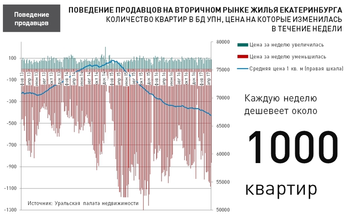 Быстрее всех за апрель дешевели квартиры в отдаленных районах (Горный щит, Изоплит, Исток, Кольцово, Птицефабрика, Семь ключей и т.д.), а также квартиры большой площади (4 и более комнат).КомментарийАналитический отдел УПН:- Избыточное рыночное предложение заставляет собственников квартир, с изначально завышенными представлениями о цене собственной квартиры, идти на уступки не только в процессе торга, но и в период экспозиции на рынке. Еженедельно около 1000 собственников квартир принимают решение снизить цену. Это лишний раз доказывает тезис о том, что выход на рынок по конкурентной цене является важнейшим условием реализации квартиры в разумные сроки.