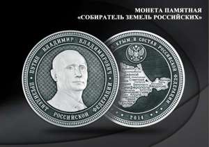 Зато монета с профилем Владимира Путина существует. Правда, расплатиться ей нельзя - монета сувенирная, но зато в ней целый килограмм серебра и говорящее название - "Собиратель земель российских".