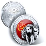 Перейдем от милоты к героике. В 2014 году Маршалловы острова выпустили серию «Космос СССР», две монеты в которой были посвящены собакам-космонавтам - знаменитым Белке и Стрелке, а также менее известной и менее удачливой, но самой первой Лайке. Между прочим, это уникальный случай в мировой нумизматике - нигде больше, в том числе и в самой России, монет в честь собак-космонавтов не чеканили.