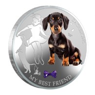 На следующий год инициатива перешла в тихоокеанский регион: на Фиджи запустили серию «Собаки и кошки» (но о котиках - как-нибудь в другой раз). Ее собачья часть в свою очередь делилась на три подсерии - «Мой маленький щенок», «Мой лучший друг» и «Мой защитник». На каждой монетке была сделана вставка из циркона (фианита). Самой умилительной получилась, конечно, «щенковая» подсерия. Хотя такса из подсерии «Мой лучший друг», пожалуй, не уступит щенкам в симпатичности.
