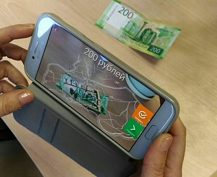Чтобы проверить купюру, в приложении нужно нажать на кнопку «Определите банкноту 2017» и навести на банкноту камеру мобильного телефона. Сервис распознает подлинность купюры, а также покажет изображенные на купюрах достопримечательности в дополненной реальности.