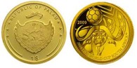 Через четыре года, к ЧМ-2002, вышла целая серия из золотой и двух серебряных монет. Одна из серебряных весила целый килограмм и имела очень оригинальный дизайн - в футбольный мяч были вписаны семь стран-чемпионов и годы, когда они добивались этого титула. В центре монеты красовались контуры Японии и Кореи - стран-хозяек турнира.