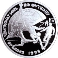 Первый мундиаль, на котором играла сборная современной России, прошел в 1994 году, но к этому событию ЦБ РФ никаких монет не отчеканил (115-летие Бажова оказалось для него важнее). К следующему чемпионату регулятор «исправился» и в 1998 году выпустил симпатичную серебряную монетку