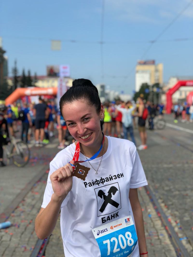 Попробовали свои силы и сотрудники Райффайзенбанка. Они пробежали дистанцию в 10 км за 1 час.