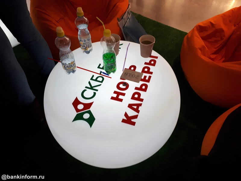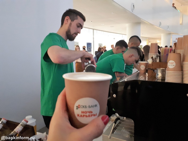 Пресс-служба СКБ-банка:На стенде «Точки» соискателей ждали леденцы и оригинальный мастер-класс.- Стенд СКБ-банка привлекал различными активностями. Например, любой желающий мог снять короткометражный ролик в 3D графике, воспользоваться 3D-очками с дополненной реальностью или сыграть в головоломку «Галактика». А самое главное, любой студент или выпускник мог получить достоверную информацию об актуальных вакансиях, заполнить анкету для устройства на работу или записаться на практику. После этого в импровизированном кофе-баре СКБ-банка можно было угоститься свежесваренным кофе на любой вкус и отдохнуть в лаундж-зоне.