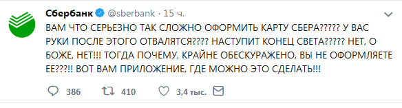 На удивление «быстро» Сбербанк согласовал свой твит - всего за один день.