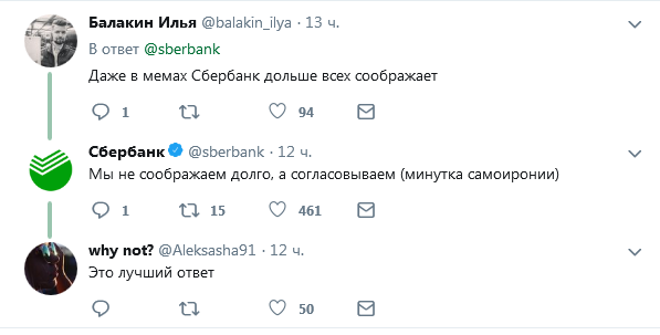 Многие подписчики очень даже неплохо реагируют, да и Сбербанку в чувстве юмора не откажешь.