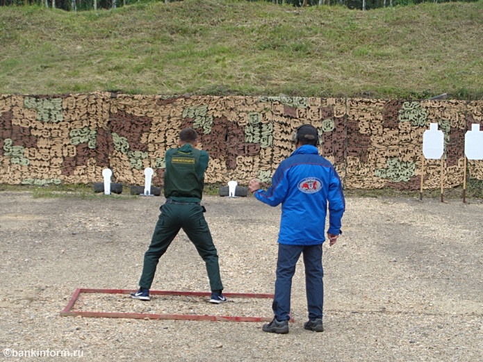 На стрельбище также имитировались реальные ситуации - от нападении при сопровождении клиента до перестрелки при входе в офис. «Новинкой» стала стрельба из движущегося автомобиля.