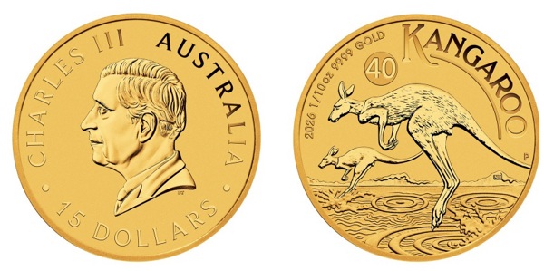 кенгуру - символ Австралии. Изображение меняется каждый год. Надпись AUSTRALIAN KANGAROO - австралийский кенгуру. Также указаны год выпуска монеты, вес 1 oz. и проба золота 0.9999. На монете 2022 года изображен скачущий кенгуру, а на заднем плане силуэт детеныша кенгуру.