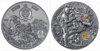 восточное изображение дракона, преследующего пылающую жемчужину. На заднем плане - сундуки с сокровищами, а также статуи и иконы древних цивилизаций. В верхнем левом углу отчеканена буква «P», знак монетного двора Перта (Perth Mint).