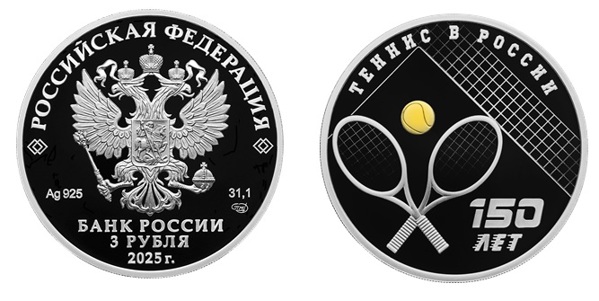 Аверс: рельефное изображение Государственного герба Российской Федерации, над ним вдоль канта – надпись полукругом «РОССИЙСКАЯ ФЕДЕРАЦИЯ», обрамленная с обеих сторон сдвоенными ромбами, под гербом слева – обозначения драгоценного металла и пробы сплава, справа – содержание химически чистого металла и товарный знак монетного двора, внизу в центре в три строки – надпись «БАНК РОССИИ», номинал монеты «3 РУБЛЯ», год выпуска «2025 г.».