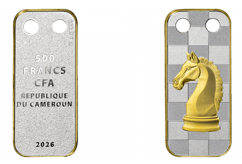 Аверс: изображен герб Камеруна с надписями: «REPUBLIQUE DU CAMEROUN» — страна-эмитент, «Ag 999» — проба серебра, «500 FRANCS CFA» — номинальная стоимость и «2026» — год выпуска.