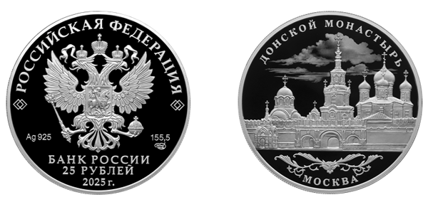 Реверс рельефное изображение Донского монастыря на фоне изображения облаков, выполненных в технологии лазерного матирования; по окружности – надписи: вверху – «ДОНСКОЙ МОНАСТЫРЬ», внизу, под рельефным орнаментом, – «МОСКВА».